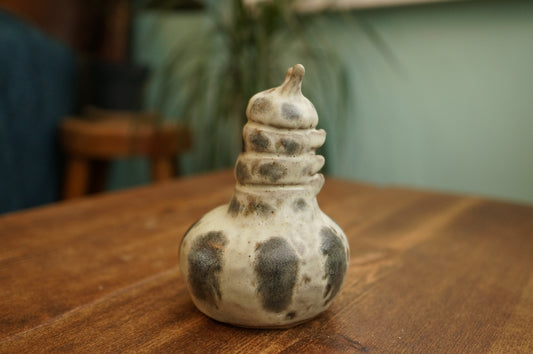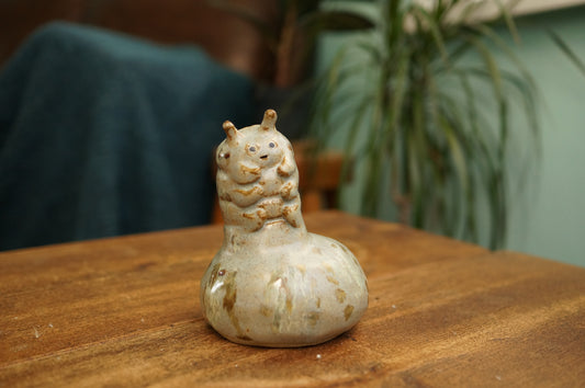 Handbuilt Grey Green Caterpillar Vase