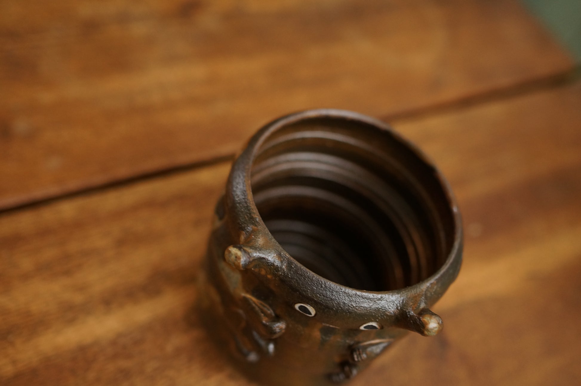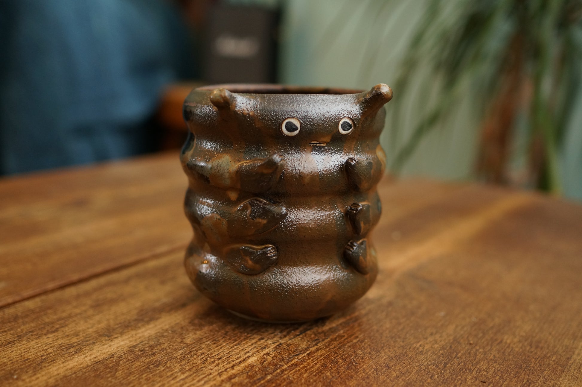 This ceramic caterpillar cup was handmade using stoneware. It is glazed both inside and outside. It is a perfect size for enjoying your afternoon tea.