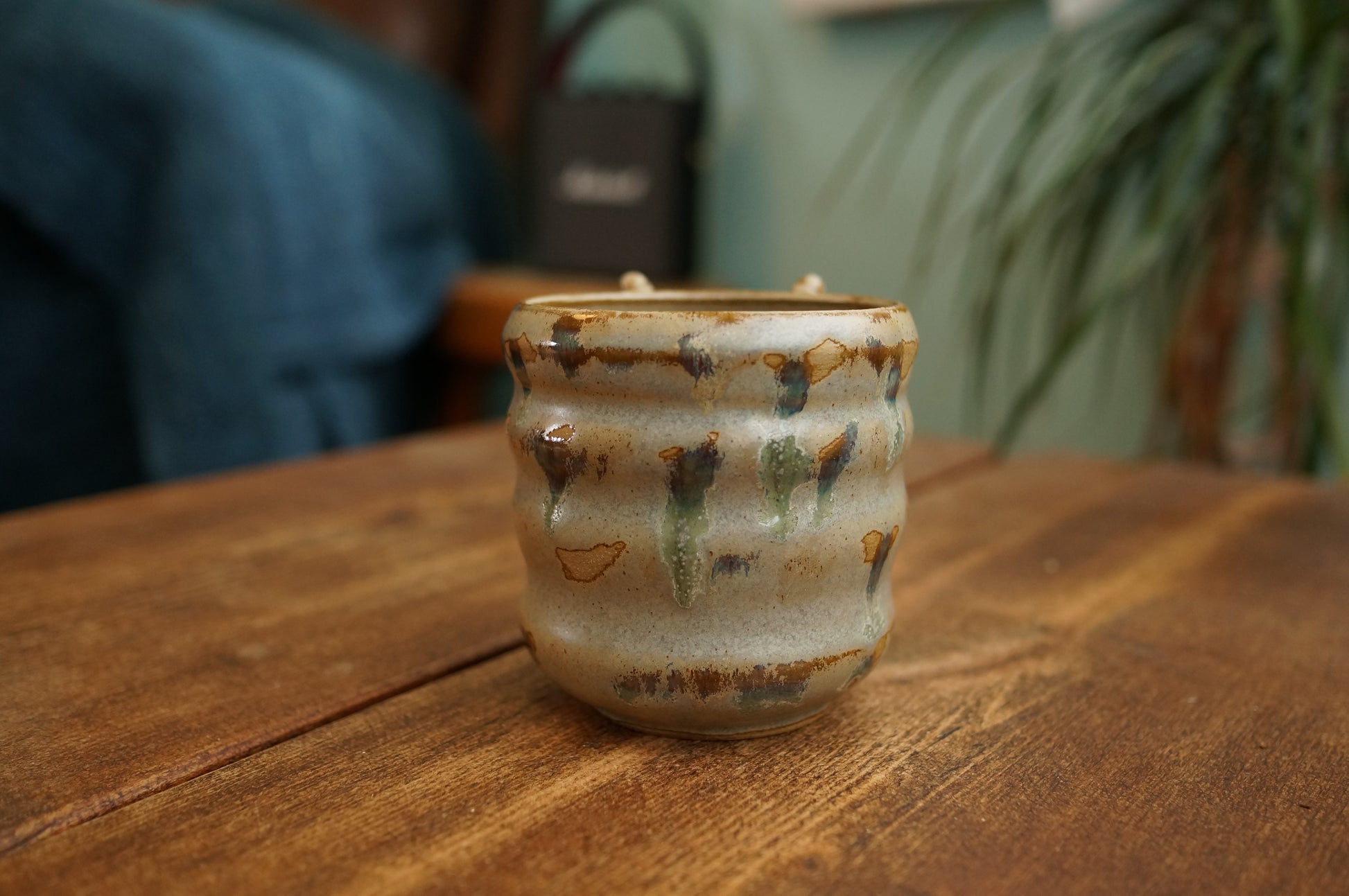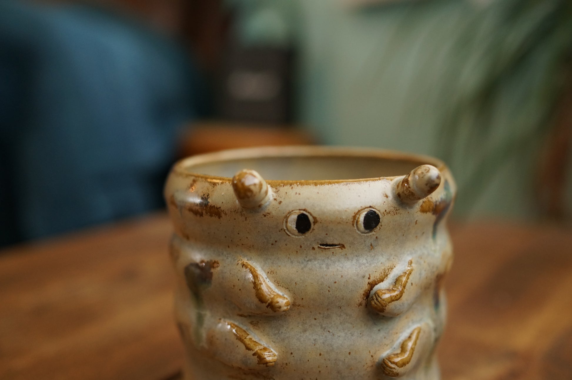This ceramic caterpillar cup was handmade using stoneware. It is glazed both inside and outside. It is a perfect size for enjoying your afternoon tea.