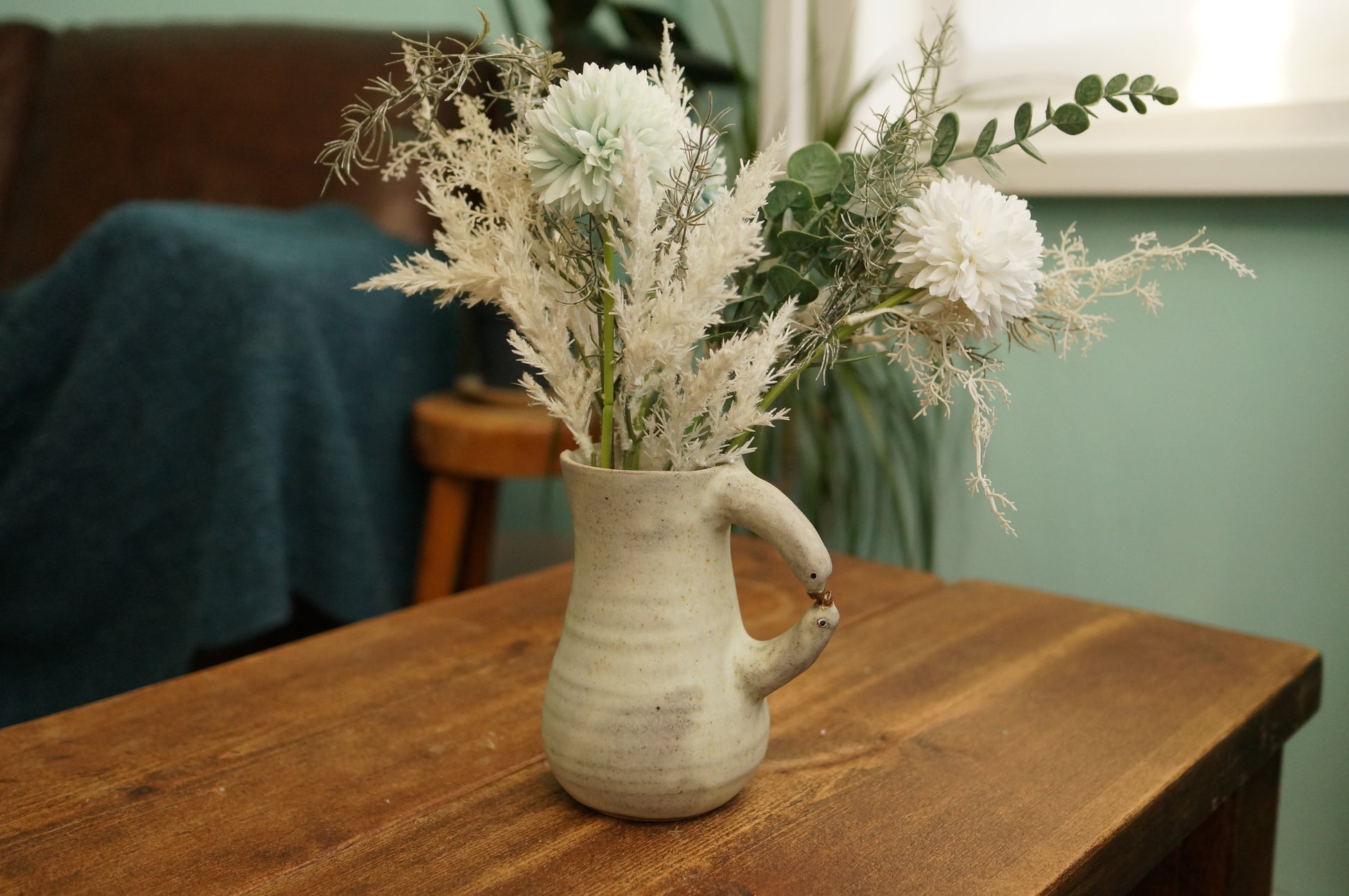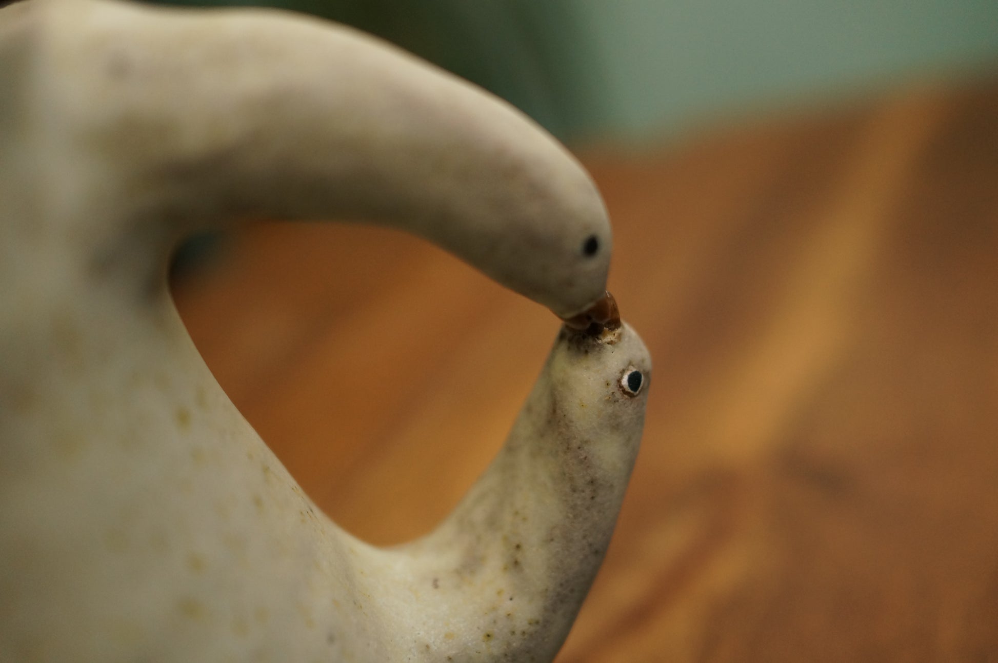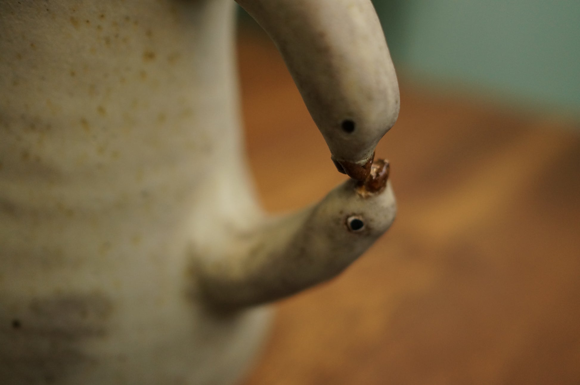 This ceramic two duck vase was handmade using stoneware. It is glazed both inside and outside.